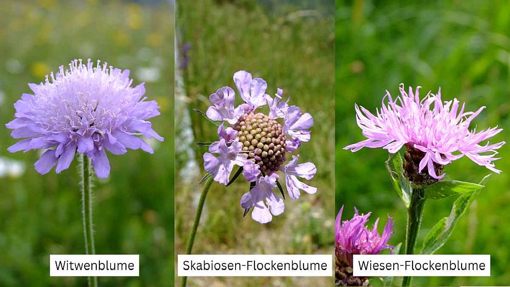 Wie die ähnlich aussehenden Arten Acker-Witwenblume (Knautia arvensis), Tauben-Skabiose (Scabiosa columbaria) und Wiesen-Flockenblume (Centaurea jacea) wird auch der Teufelsabbiss, der auf mageren, wechselfeuchten Wiesen und Mooren zu finden ist, Blaukappe, Husarenknopf, Sternkopf, Kissenblume oder auch Rossguckle (Pferdeaugen) genannt. Englisch heißt er bachelor’s button oder gentleman’s button, latinisch morsus diaboli oder morsus daemonis.