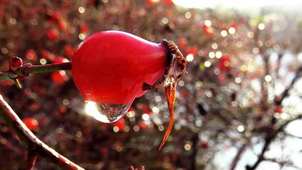 Fruity Benefit: Durch Frosteinwirkung weich gewordene oder einfach mit der Zeit überreif gewordene Hagebutten enthalten deutlich weniger Vitamin C, dafür aber mehr Süße. Carotinoide, Flavonoide, Gerbstoffe, Fruchtsäuren, Pektine, Mineralstoffe nicht zu vergessen.