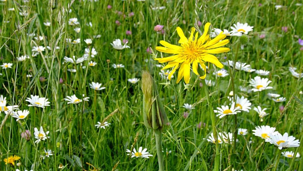 Bicki-Backa –> Wiesen-Bocksbart (Tragopogon pratensis): Keiner weiß (mehr), woher diese Bezeichnung kommt, ebenso wie Pipelpapeln oder Pitschepatsch.