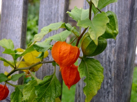 Die Kürbislaternen haben ausgedient, die Martinszüge sind um, im Garten leuchten immer noch Lampions. Es sind die Früchte der Blasenkirsche (Physalis alkekengi), nicht von ungefähr als Lampionblumen bekannt. In den grell orangefarbenen, papierartigen Hüllen stecken hellrote, kirschgroße Früchte. Diese sind manchmal süß, bisweilen bitter. In kleinen Mengen darf man sie ruhig essen. Lampions über die Kerzchen einer Lichterkette gestülpt, fertig ist eine ganz besondere Dekoration.